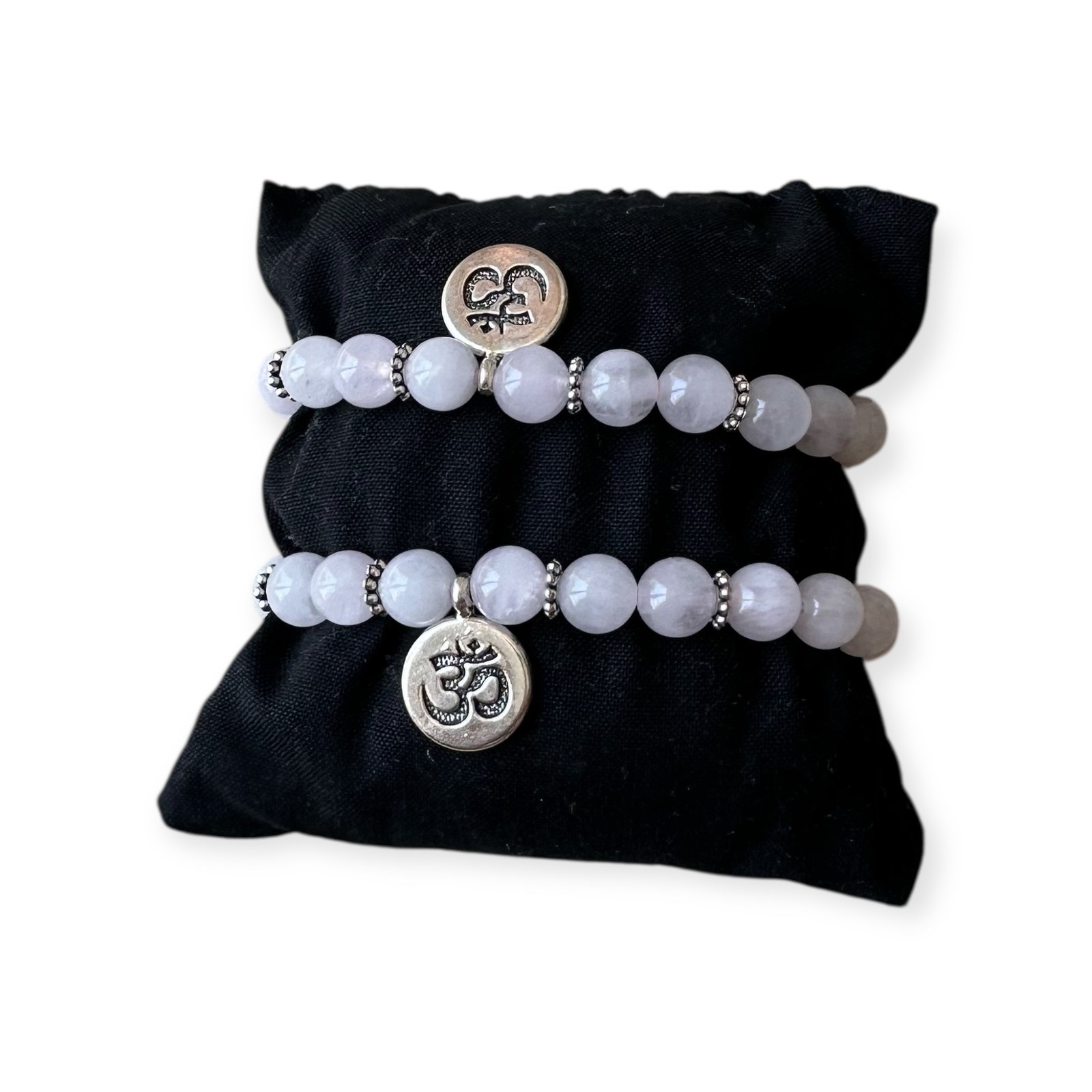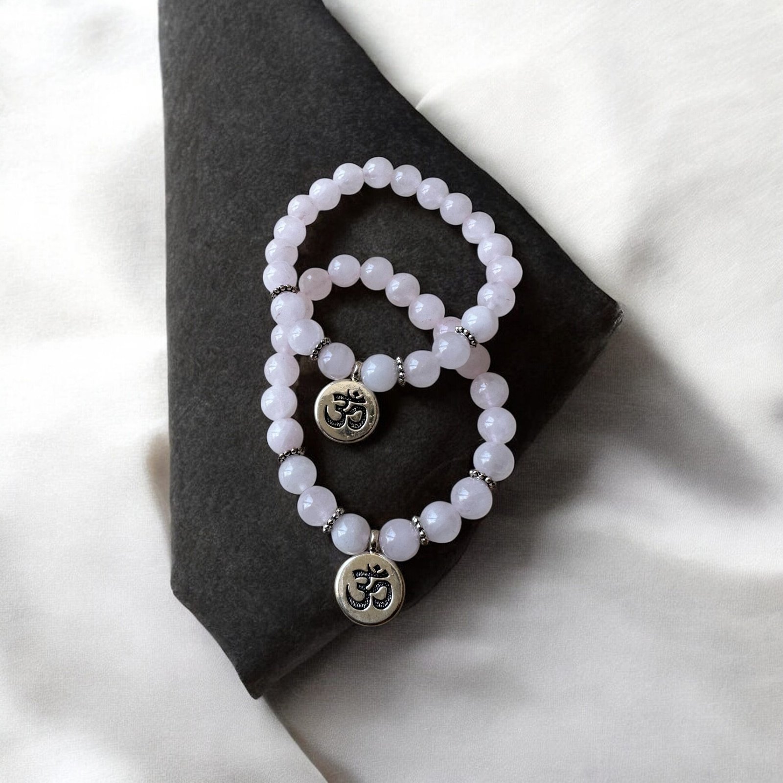 Bracelet Quartz Rose 8 mm & Symbole Ôm – Amour, Douceur et Éveil Intérieur