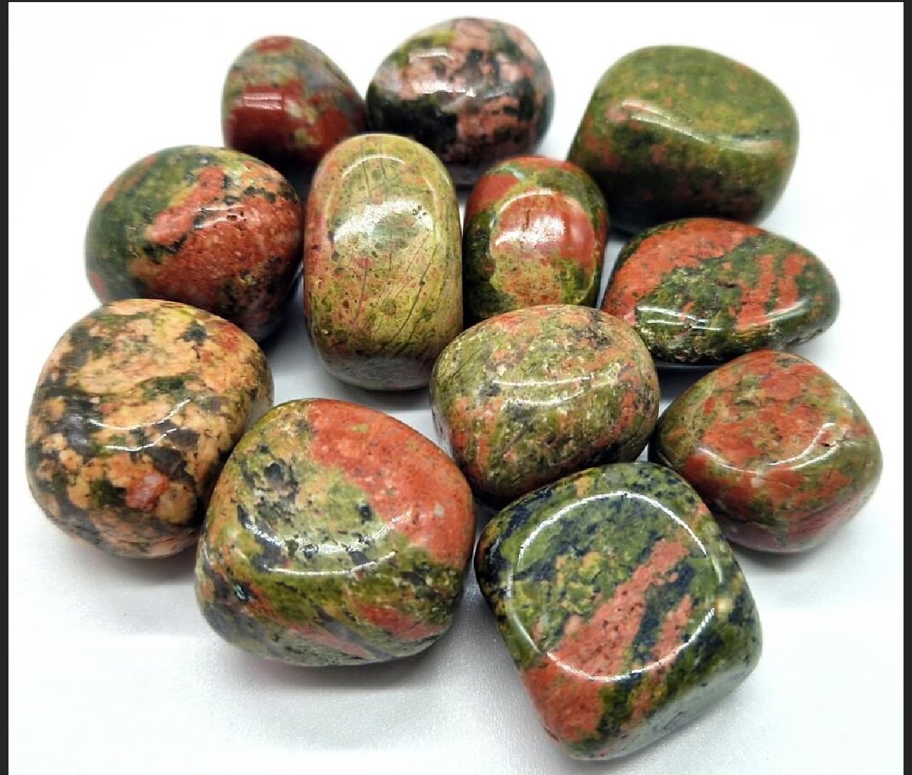 Unakite roulée qualité A, pierre naturelle vendue à l’unité. Favorise la guérison émotionnelle, l’ancrage et la confiance. Cadeau surprise offert avec la première commande.